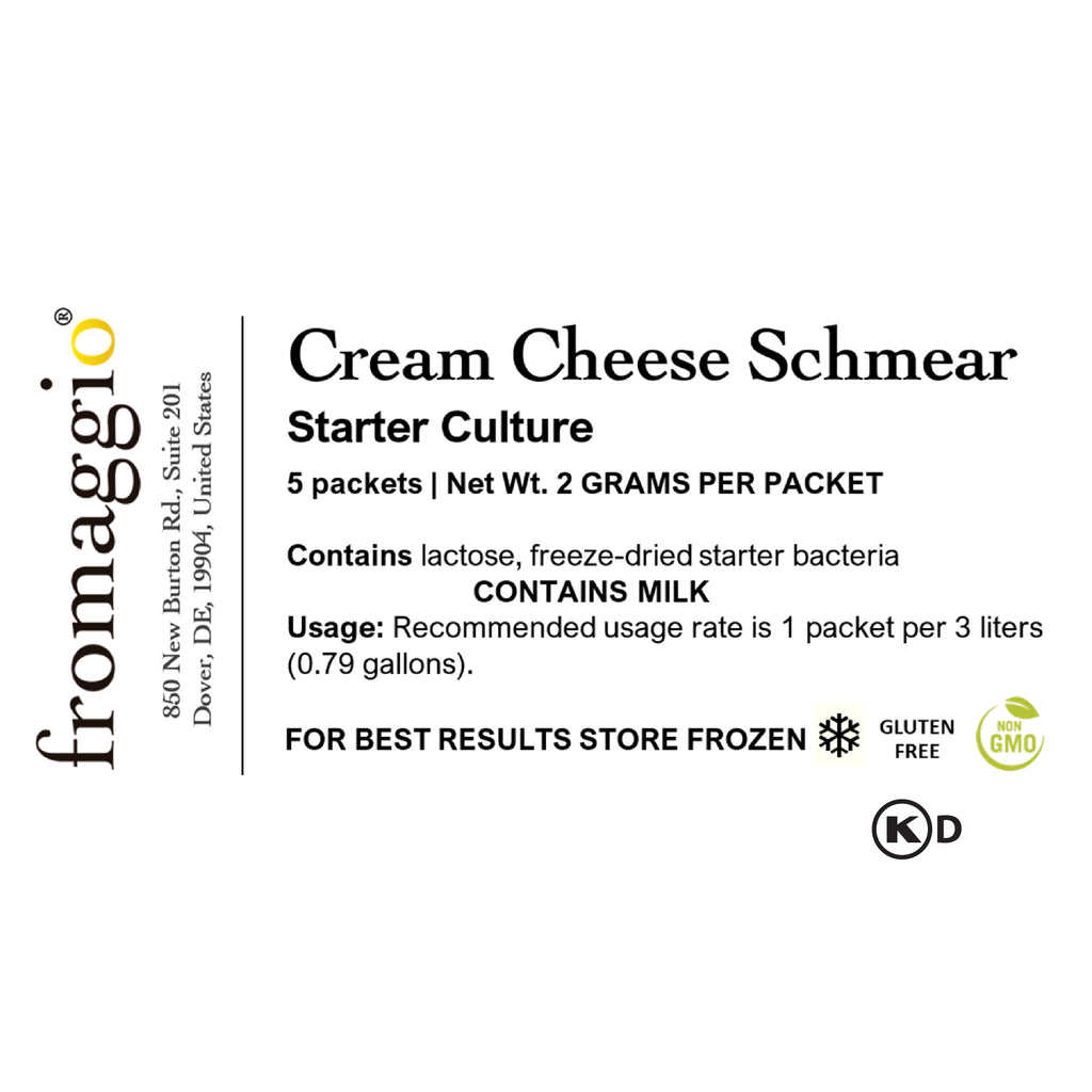 The pouch includes 5 packets with 2 grams of starter culture each, which can make a total of around 7 pounds of cream cheese.