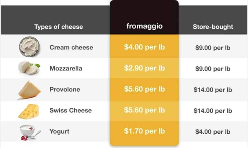 平均的な家庭は、保存料や添加物が含まれた市販のチーズに年間$800以上を費やしています 🧀。Fromaggioを使えば、自宅で新鮮で自然なチーズを手頃な価格で作ることができ、毎年何百ドルも節約しながら、より健康的で美味しいチーズを楽しむことができます。🍽️✨