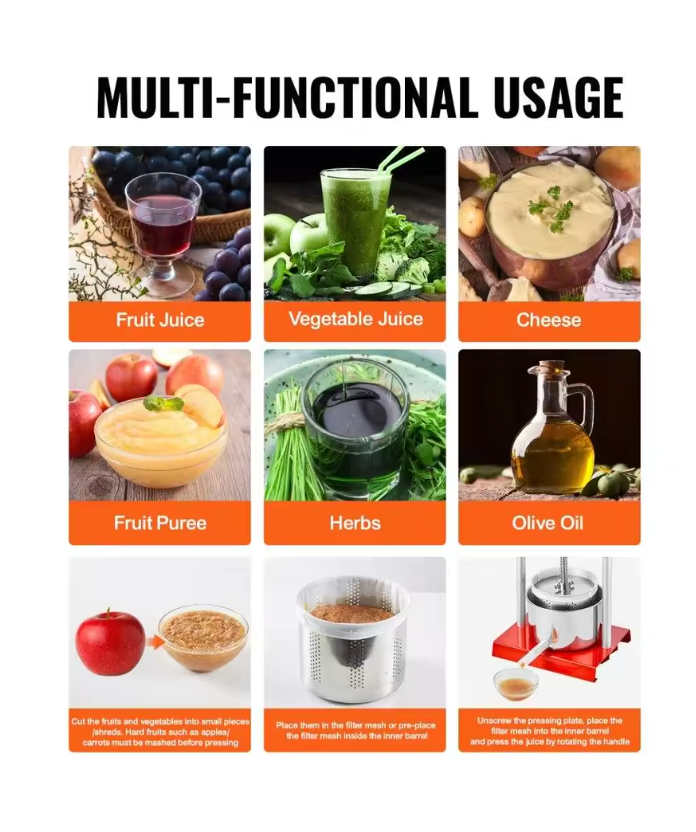 Elevate your cheesemaking experience with our premium cheese press, designed for crafting artisanal cheeses at home. This manual cheese press allows you to control the pressing process, ensuring you achieve the perfect consistency and texture for your cheese. Create delicious, natural cheeses that your family will love. Also can be used to press fruits to make fresh juice, olives for olive oil, and even grapes for wine. The ultimate DIY tool!